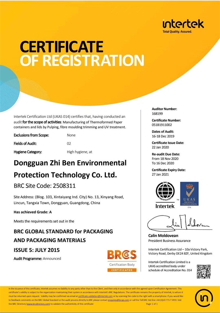 祝東莞市植本環(huán)保科技有限公司在創(chuàng)思維驗廠之家專業(yè)輔導(dǎo)下通過ITS BRC認(rèn)證并取得A級證書