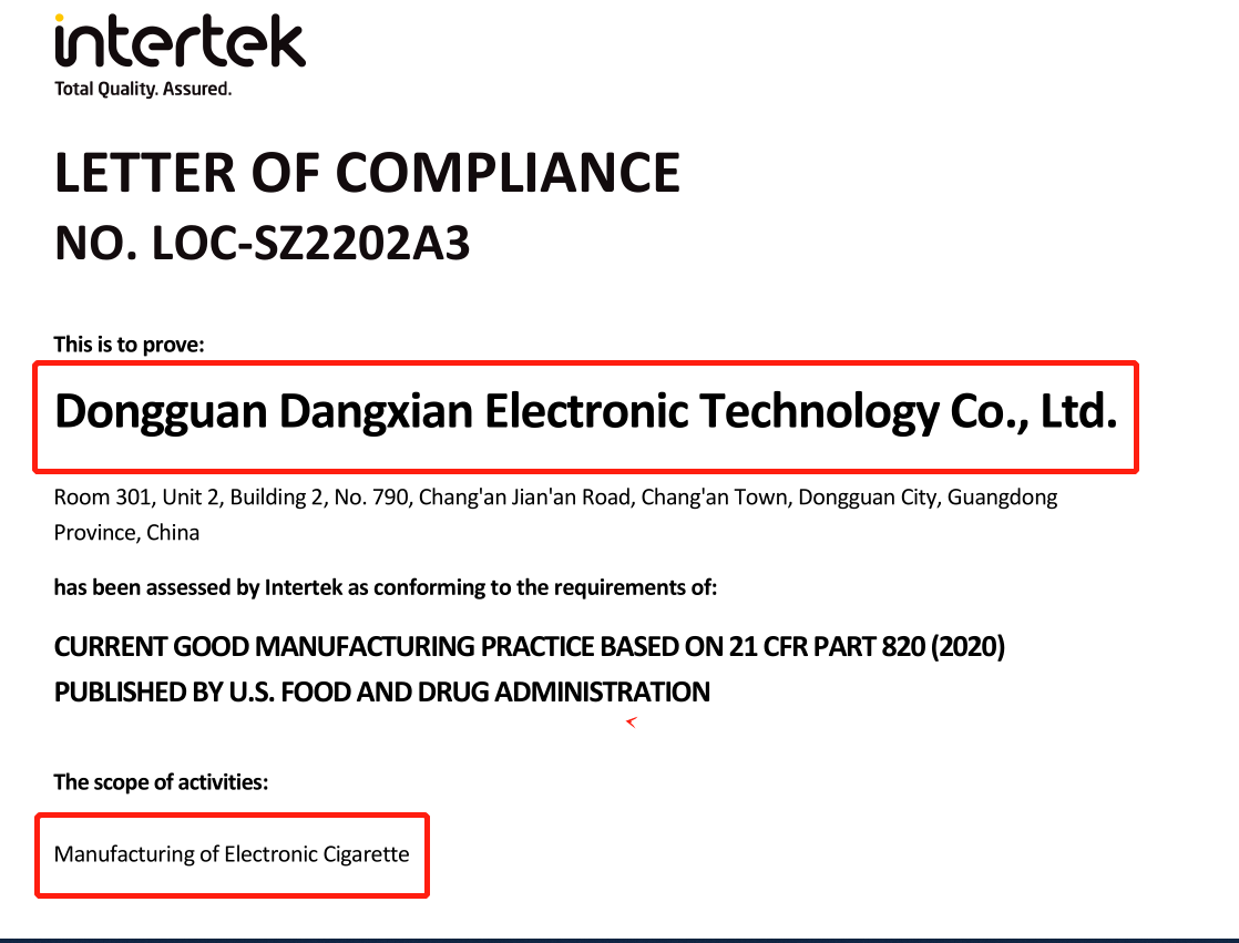 當(dāng)先電子2022年在創(chuàng)思維中國(guó)驗(yàn)廠網(wǎng)輔導(dǎo)下順利通過(guò)電子霧化器GMP-820認(rèn)證審核。