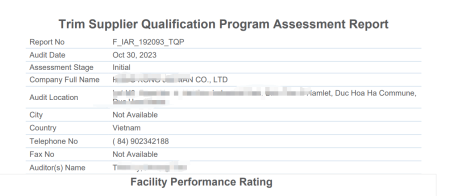 祝賀HONGKONG俊文(越南)有限公司2023年快速通過ITS-TQP驗廠審核并且獲得94分