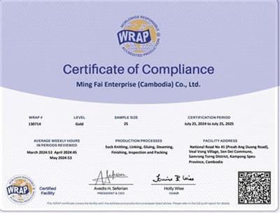 祝賀Ming Fai Enterprise (Cambodia) Co., Ltd.柬埔寨工廠2024年快速通過(guò)WRAP認(rèn)證